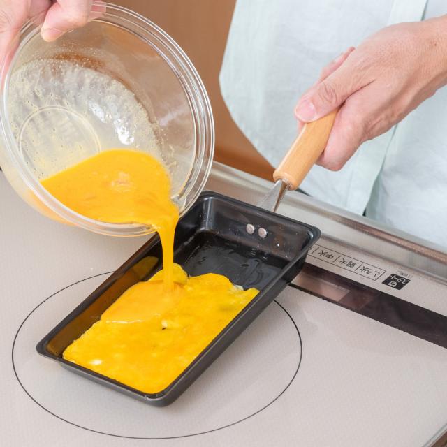 こちらのサイズは、卵1個で卵焼きを作ることができます。スリムなので、何度も卵液を流し込まず一気に巻くことができます。素早く作れて、時短調理が可能です。