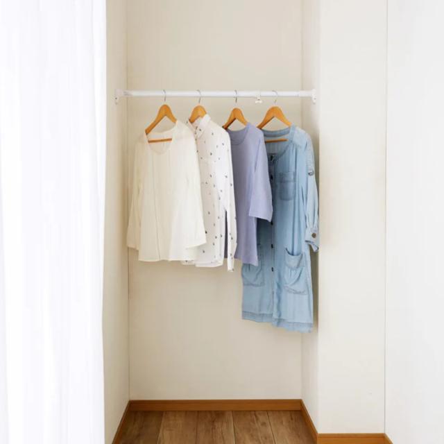 ジャッキ式の超強力タイプなので、洗濯物の部屋干し用としてや クローゼットで洋服、重さのあるバッグを掛けたりと、アイデア次第でさまざまな場所で活用できます。