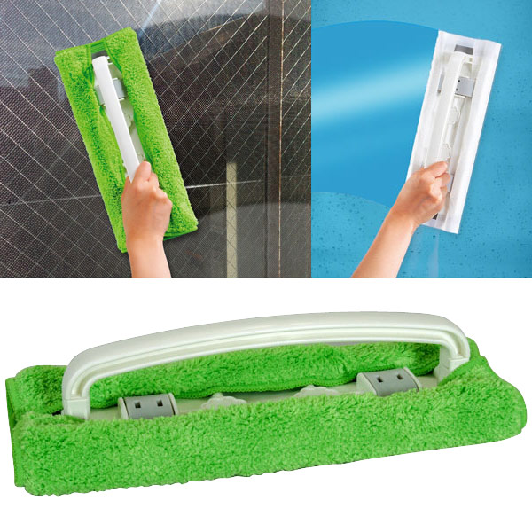 ![]() ![]() 網戸を外さなくても掃除できる網戸を外すことなく、片手で拭き掃除ができるハンディタイプの網戸・窓用ワイパーです。付属の網戸専用モップを取り付ければ、 洗剤を使わずに網戸掃除ができます。また、ガラス拭き用シートを取り付ければ窓ガラス掃除もできます。 用途に合わせた2種類の使い方付属のモップを取り付ければ、網戸掃除に使えます。ガラス拭き用シートを取り付ければ窓ガラス掃除もできます。お手持ちのクロスや雑巾を取り付けることも可能です。四角いヘッド形状なので、お掃除しにくい窓枠のコーナーにもフィットします。手首の延長で動かせるので疲れにくく、長時間使用できます。 網戸の目に入り込む専用モップモップには、ブラシ繊維入りのマイクロファイバーを採用しています。繊維1本1本が多角形構造になっているため、従来の繊維では滑ってしまう汚れも、洗剤を使わずかき取ることができます。網戸の目までしっかりと入り込み、洗剤を使わず水だけで汚れを落とすことができます。モップは洗ってくり返し使えるので経済的です。 モップ・シートなどの取り付け方法 水滴・結露取りとして 1.広げたモップやシートなどの中央に本体をセットします。※モップはブラシのあるモップ面が外側になるようにセットしてください。2.本体を包むようにして、モップやシートなどを本体のミゾの奥までストッパーと一緒に押し込みます。※モップやシートなどを取り外す時は上方向に軽くひっぱってください。 ![]() ![]() |