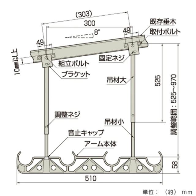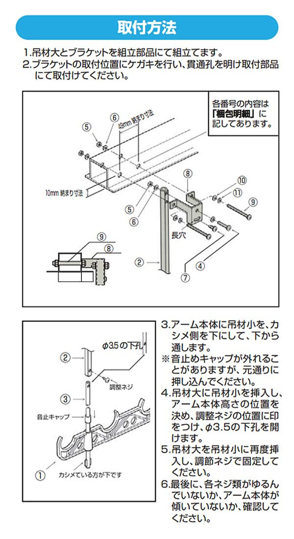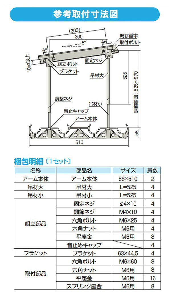 | 注意事項 | ※取付に必要な道具:電動ドリル、プラスドライバー、六角レンチ ※物干し竿は商品に含まれません |