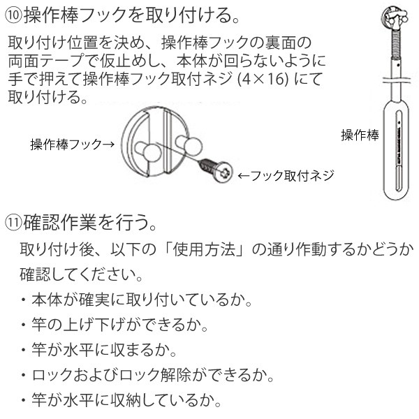 ※洗濯物を干している間(竿を使用している間)は、操作棒は取り外せません。