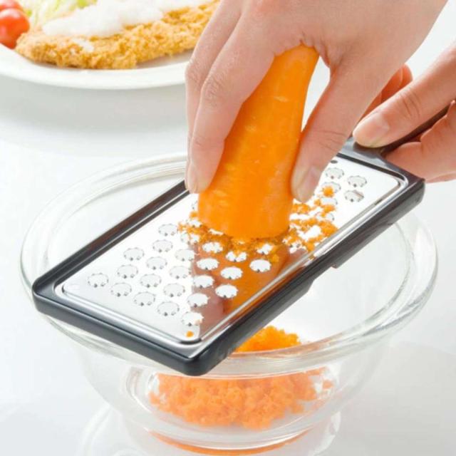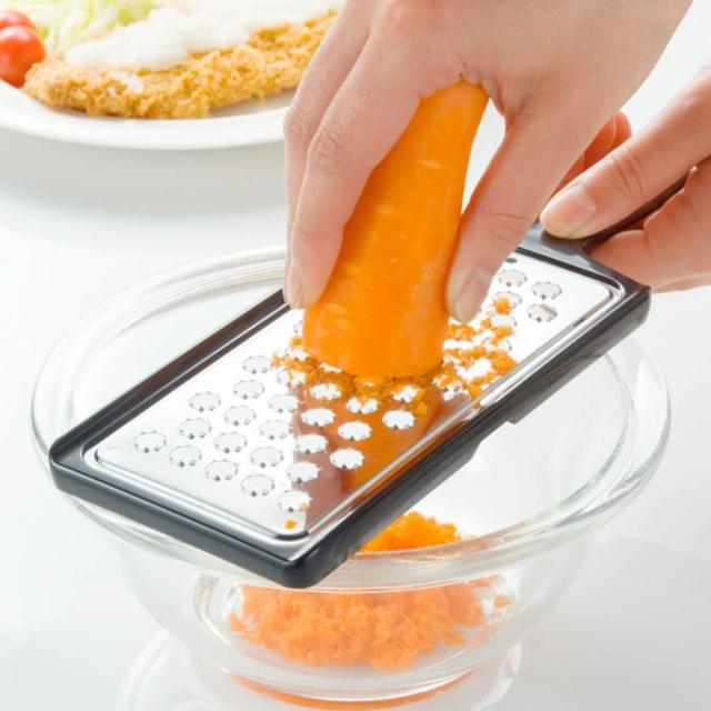 ブラックの枠色で落ちつきのある和のイメージのおろし器は、ステンレス板の目立てで、大根や長芋、人参、りんごがなめらかにおろせます。手軽に素早くプロのような仕上がりになります。