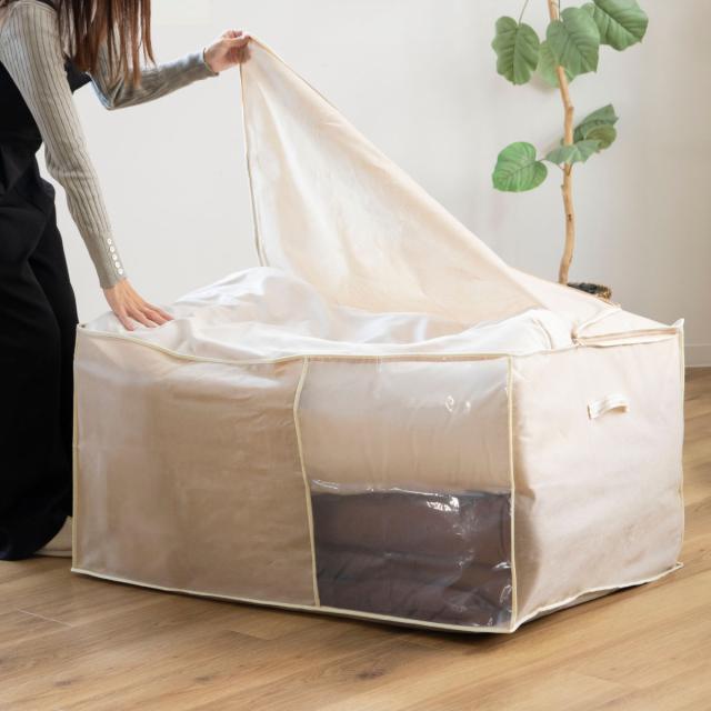 《 LH952 押し入れ 押入れ クローゼット 羽毛 ふとん 収納袋 大きい ふとん袋 かけ布団 シーズンオフ 保管 通気性 ホコリ 汚れ 守る 対策 大容量 ベージュ かさ高 持ち運び 棚上 衣替え 来客用 季節物 便利グッズ 便利用品 人気 おすすめ オススメ 》