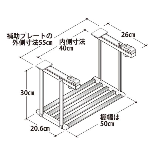吊戸棚下の空間を有効活用 はさみタイプ1段 幅50cm