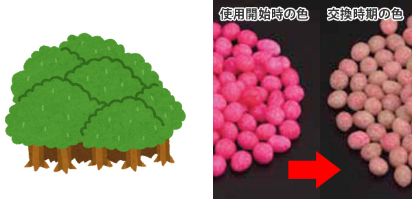 | ほのかな森林の香り 素材は化粧品の原料にも使われている安全な成分(化粧品原料基準収載品目)を使用。 ほのかな森林の香りで使用感がすぐに体感できます。 ※森林の香りは初期段階のみで除々に薄れます。 | 使用期限がひと目でわかる 効果は最低でも半年ほど持続します。使用期限を色の変化で確認(インジケーター機能)できます。 |