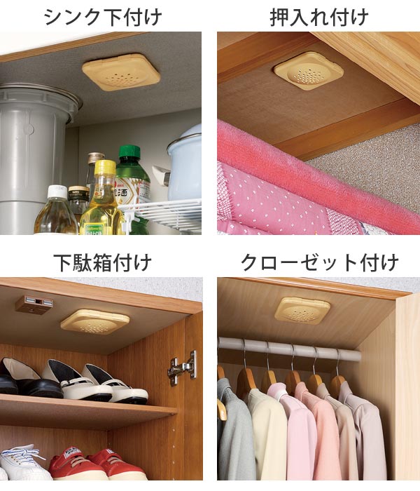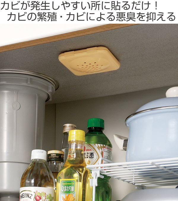 押入れ、下駄箱やシンク下に貼るだけで、カビ類の繁殖やカビによる悪臭を抑えます。抗カビ成分が自然に気化する方式なのでスプレー式と違い、何度も吹きかけるお手入れの手間が要らないのでお掃除が楽になります。