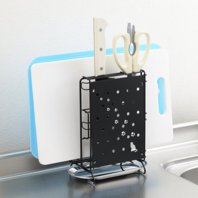 包丁スタンド まな板スタンド クロネコキッチン包丁・まな板・キッチンばさみスタンド ( 日本製 まな板立て まな板置き 包丁立て 包丁差し キッチンばさみ スタンド キッチンツールスタンド )