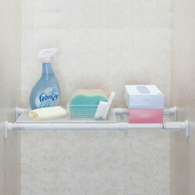 洗面所やトイレなどでデッドスペースになっている、ちょっとしたすき間ピッタリなつっぱり棚です。工具なしで簡単に収納スペースが作れます。