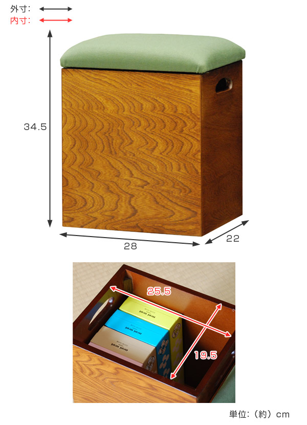 箱椅子 スツール 収納付 あおい 日本製 座面高34.5cm ( 収納スツール 座椅子 クッション 和風 国産 )