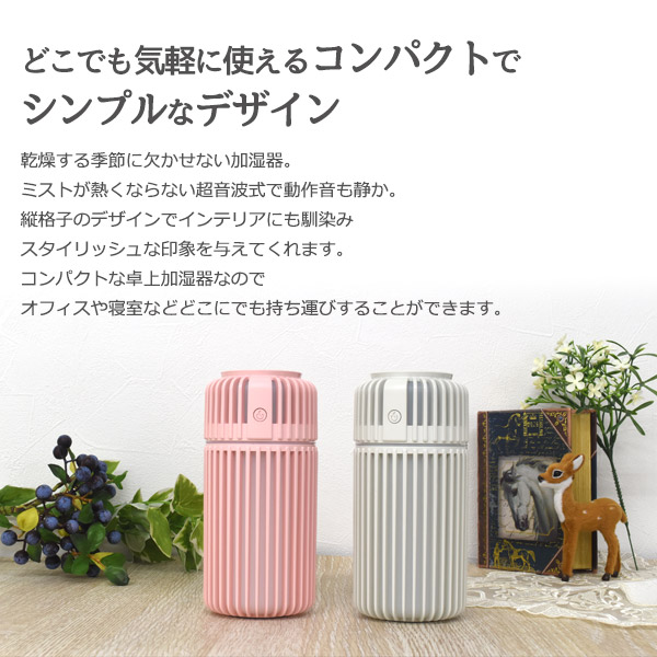 花粉の季節におススメ ミニ加湿器 卓上 超音波式 USB電源 加湿器 縦格子型 オシャレ シンプル 卓上加湿器 静音 アロマディフューザー オフィス 風邪 乾燥 保湿 デスク 花粉症 アロマポット アロマ お洒落 インフルエンザ予防 大人女子 大人可愛い