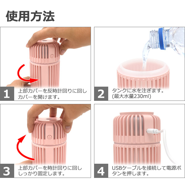 コンパクトで持ち運び楽々な卓上加湿器です。