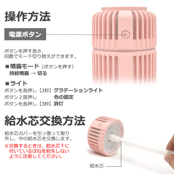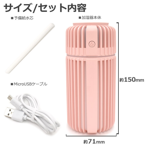 【セット内容】加湿器本体、交換用給水芯、microUSBケーブル