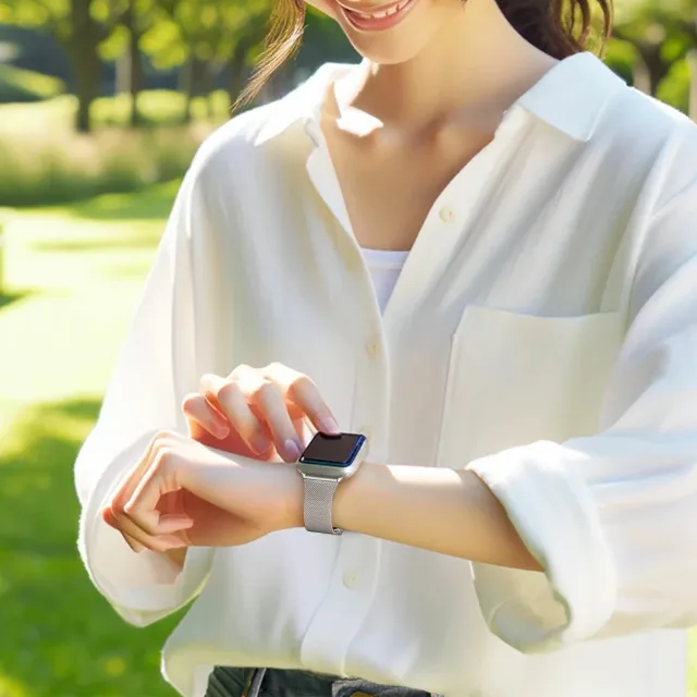 アップルウォッチ バンド ステンレススリム - iWatchの新しい装い apple watch をよりスタイリッシュに演出し、ユーザーの個性を際立たせる「ステンレススリム」替えバンドが登場しました。 この魅力的なアクセサリーは、その洗練されたデザインと高品質な素材で注目を集めています。 スリムなデザインは、その美しい外観が目を引きます。 繊細なステンレススチールが採用され、シンプルでありながらも洗練された印象を与えます。 その薄型でスリムなデザインは、手首に装着した際にバングルのような存在感があり手首周りを華やかに彩ります。 また、メッシュベルトだから快適性と耐久性にも優れています。 肌触りの良い素材と独自の製造工程により、長時間の装着でも快適な着用感を実現しました。 さらに、この apple watch バンド はその多彩なカラーバリエーションでも魅力を放ちます。 シックなブラックからエレガントなシルバー、鮮やかなゴールドまで、お好みやシーンに合わせて選択することができます。 これにより、iWatchをさらに個性豊かにカスタマイズすることができます。 最後に、簡単な取り付け方法も嬉しいポイントです。特別な道具を必要とせず、ワンタッチで取り外し可能な設計ですので、気軽に付け替えることができます。 ※ワンタッチでの取り外しが可能ですが慣れるまでは少してこずる場合があります。 ステンレススリムは、優れたデザインと機能性を兼ね備えたiWatchの替えバンドとして、あなたのライフスタイルに上質なアクセントを加えます。 |