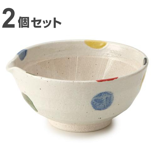 すり鉢 6号 20cm 片口 水玉 陶器 同柄2個セット ( 食洗機対応 電子レンジ対応 和食器 日本製 鉢 中鉢 ボウル ドット柄 ごま ごますり器 ゴマ 和え物 胡麻 おろし器 無地 離乳食 ペースト ごますり おしゃれ 国産 )