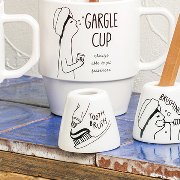 ●シンプルで清潔感のある本体に、モノトーンの手書き風の文字とイラストがおしゃれな歯ブラシホルダーです。