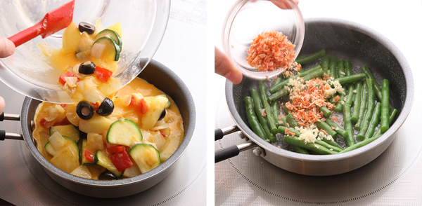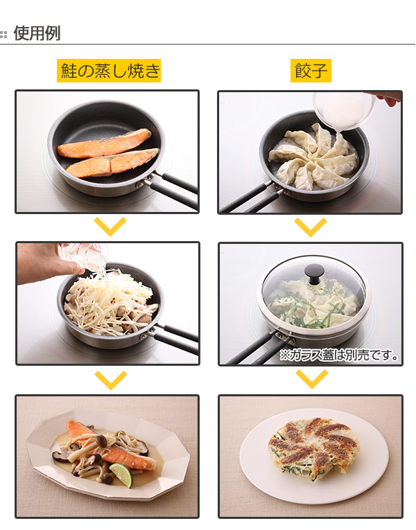 炒めたり、焼いたりはもちろん、別売のガラス蓋を使用して蒸し調理も可能です。オーブンを使用して人気のキッシュなども作ることができます。※食洗機は使用できません。