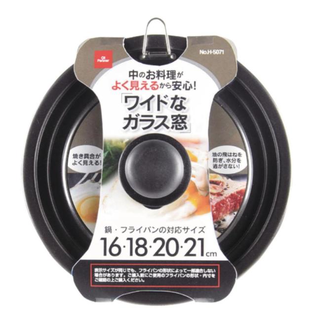 - 幅広いフライパンに対応し、ガラス製でフライパンの中が見えるところが、気に入ってます。
