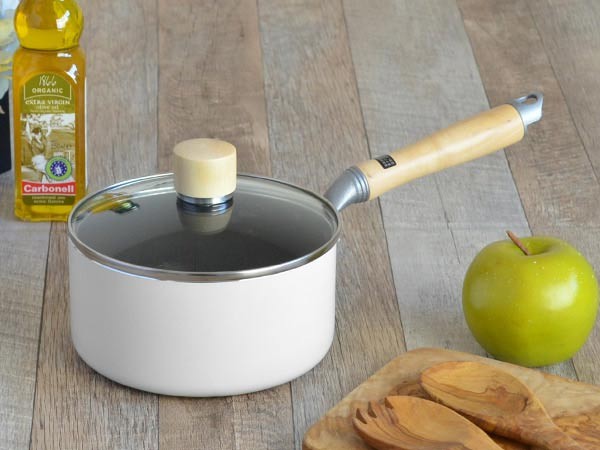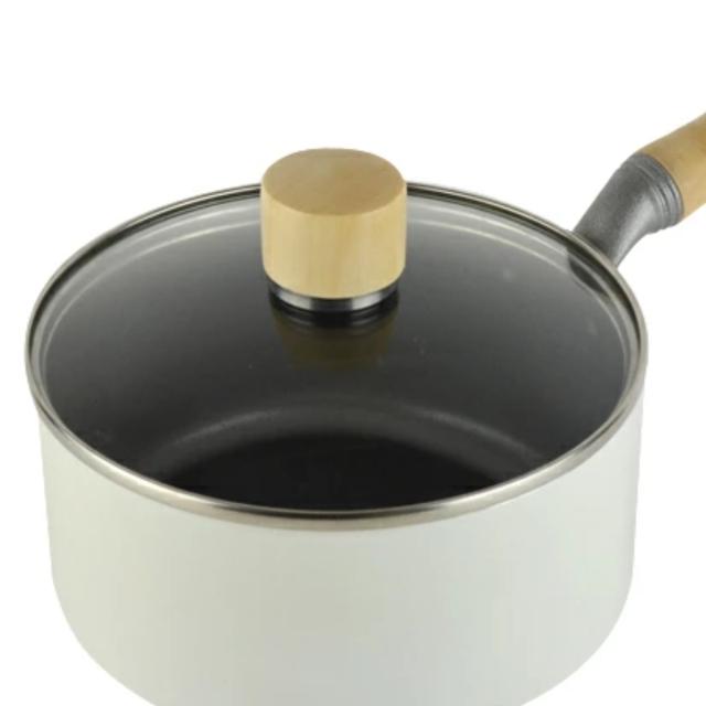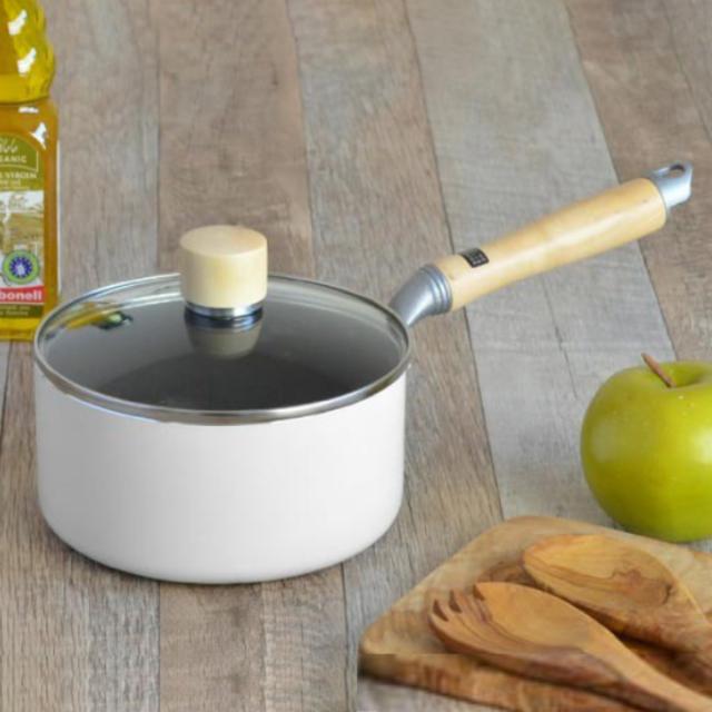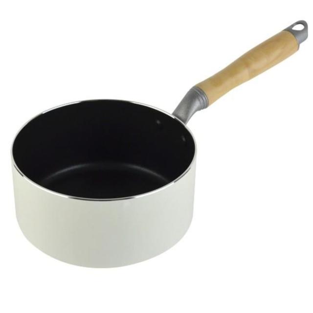 ホワイト色と木目がキッチンを彩る片手鍋16cm