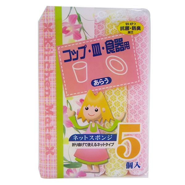 折り曲げて使えるネットタイプのキッチンスポンジ 5個入