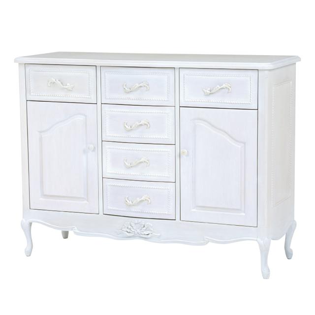 キャビネット 幅120cm 姫系 猫脚 完成品 HAMPTON ( サイドボード 白家具 クラシック 天然木 アンティーク調 収納 箪笥 たんす タンス 収納棚 扉 引き出し マホガニー )