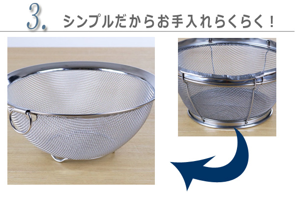 ●素材から加工まですべてが日本製のこだわりのザルです。