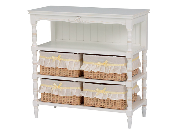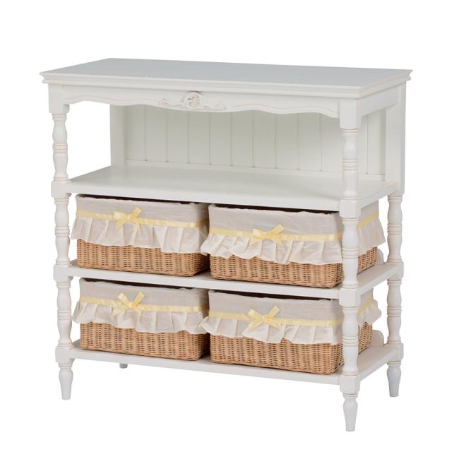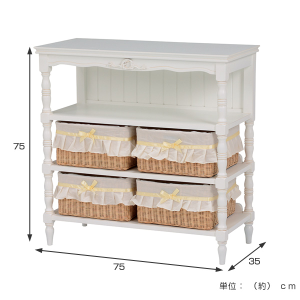 オープンキャビネット 幅75cm 3段 姫系 カゴ付 完成品 HAMPTON ( 白家具 ろくろ脚 クラシック アンティーク調 天然木 衣類収納 ランドリー リビング 寝室 収納 棚 カゴ BOX付き マホガニー )
