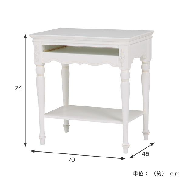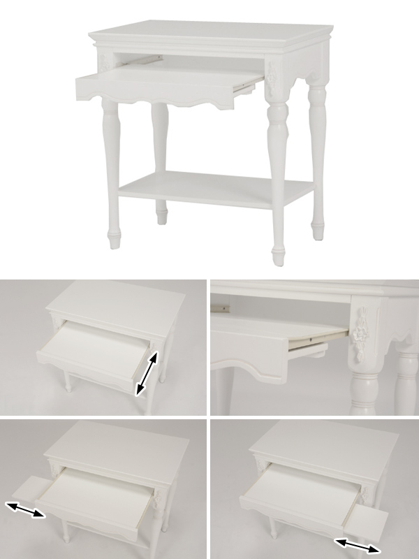 パソコンテーブル スライド台付 姫系 ロマンチック HAMPTON 幅70cm ( 白家具 ろくろ脚 クラシック アンティーク 完成品 スライド付き マウススペース 書斎机 マホガニー 天然木 )