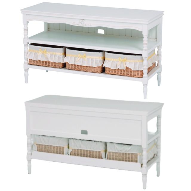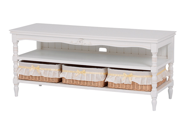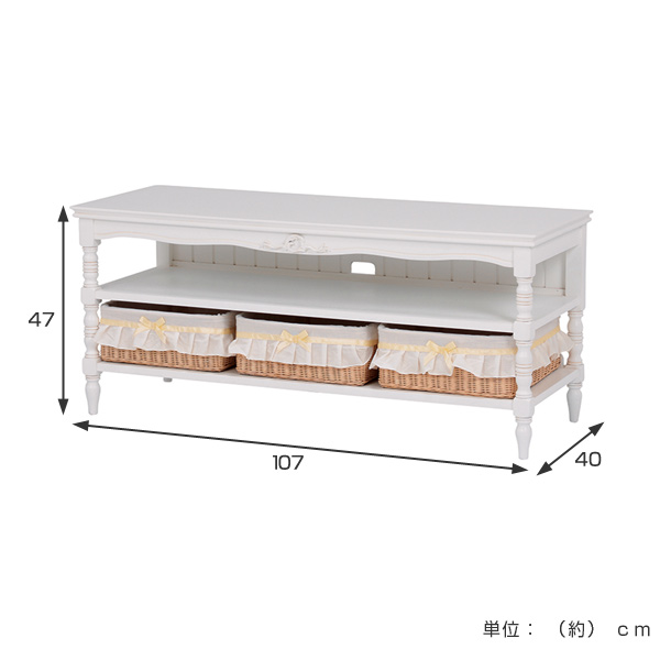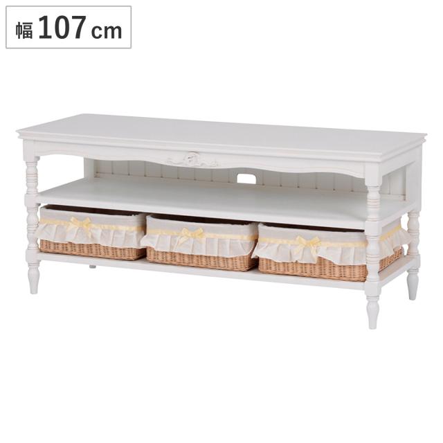 テレビ台 幅107cm 28-45V型 姫系 カゴ付 完成品 HAMPTON ( リビングボード 白家具 クラシック アンティーク調 天然木 TV台 TVボード 収納付き マホガニー )