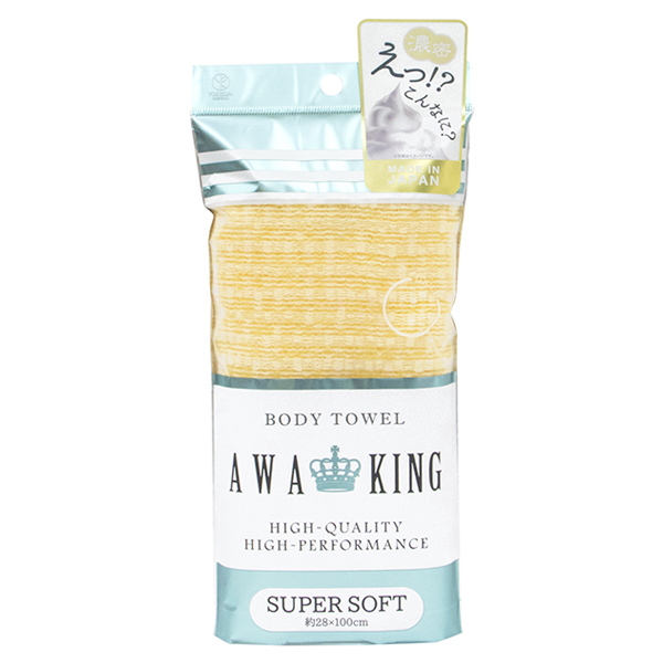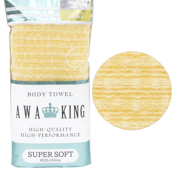 ボディタオル アワキング スーパーソフト ( ウォッシュタオル ボディータオル 浴用タオル 泡立ち ソフト 柔らかい 日本製 バスグッズ タオル 体洗い ボディウォッシュ 肌に優しい ナイロン イエロー )