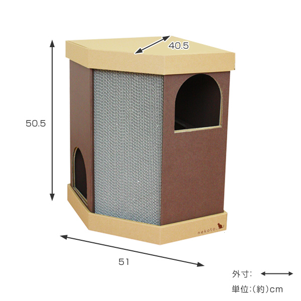 お部屋の隅にフィットする、安定感抜群の爪とぎハウス