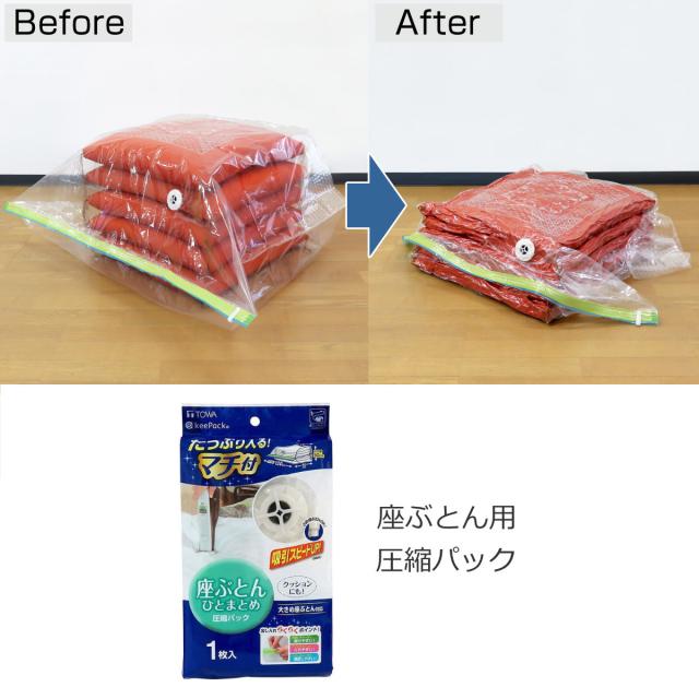 ●かさばる座布団収納のお悩みを解決してくれる圧縮パックです。