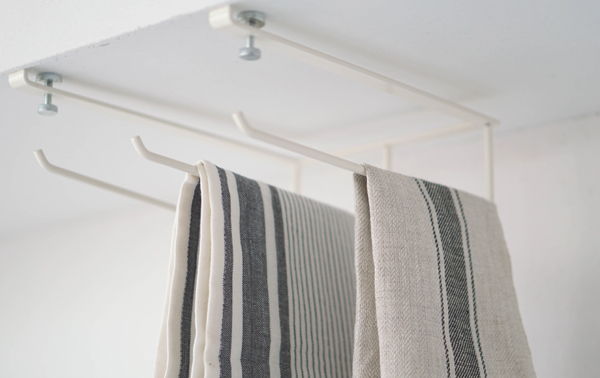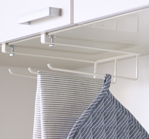 水周りのそばにほしい布巾・タオルを場所を取らずに置けます。吊り下げ式だから、使用した布巾を乾かせて衛生的です。タオル同士が重ならず、通気性に優れています。家事にかかせない布巾・タオルを調理スペースの上に置いておけるから家事の時短にもつながります。