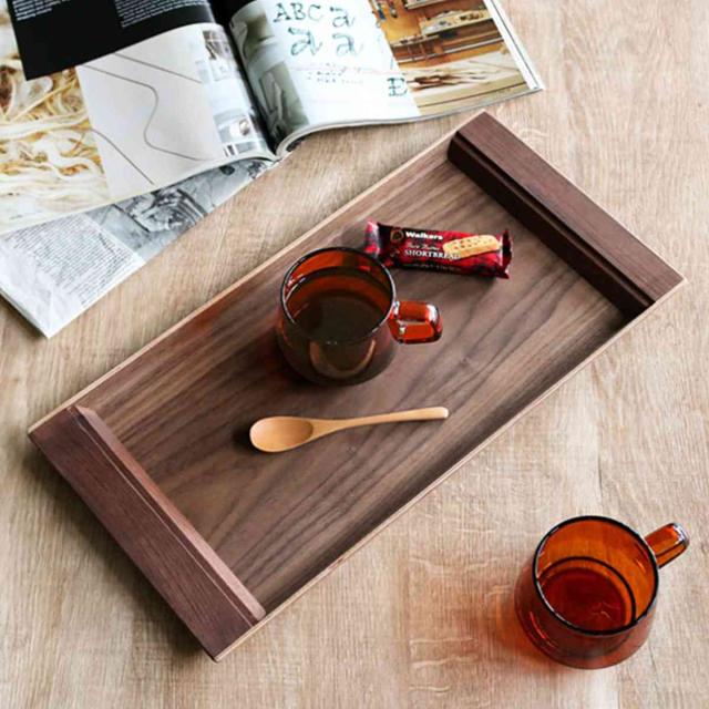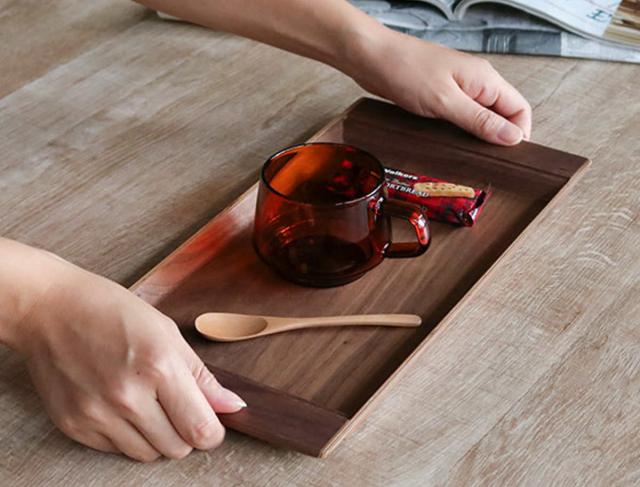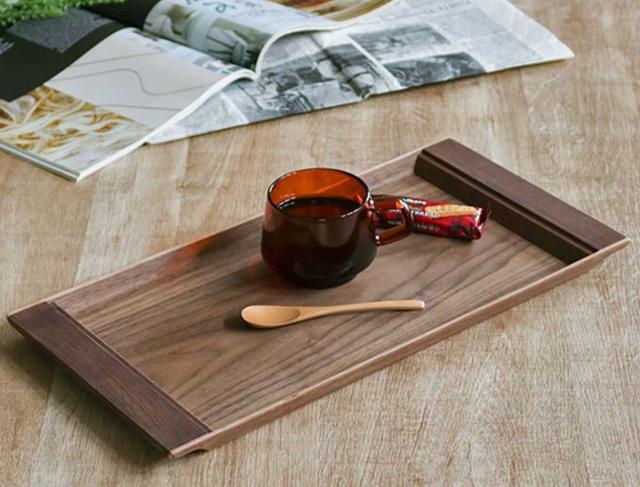 来客時にも大活躍のトレーです。カップだけではくお菓子も一緒にのせられる使いやすいサイズ感。ウォールナットの美しい木目があたたかい印象で、穏やかな時間を演出します。一息つきたいあなたに、そっと寄り添う。癒しのひとときをお過ごしください。