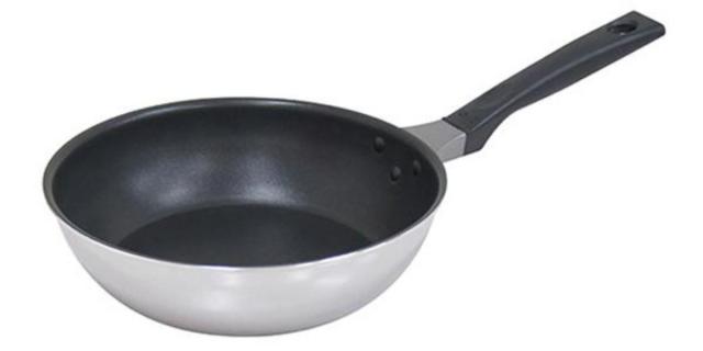 | 材質 | 本体:2層クラッド材(内側:アルミニウム合金、外側:ステンレス鋼) 本体内面:ふっ素樹脂塗膜加工 本体外面:ミラー研磨仕上げ ハンドル:フェノール樹脂 |