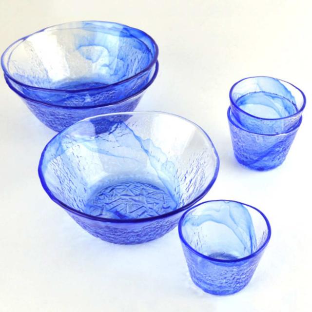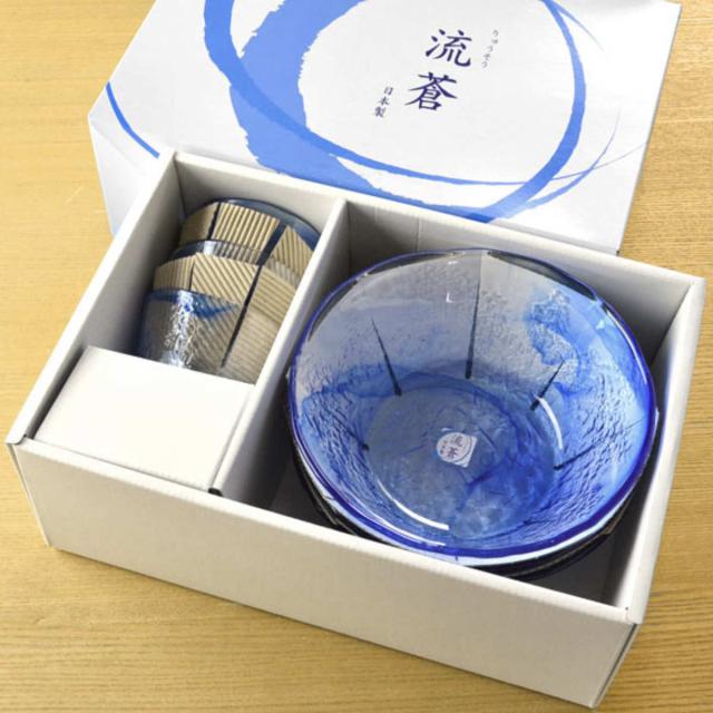 食器セット そうめん3客セット 中鉢 そば猪口 ガラス食器 流蒼 ( 食器 セット 器 ガラス そうめん鉢 そば猪口 贈答用 )