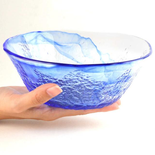 内側はつるつるで洗いやすいです。外側の凹凸は涼しげな雰囲気で、傷が目立たず、長くお使いいただけます。しっかりした厚みで取り扱いやすく、日常に馴染む器です。