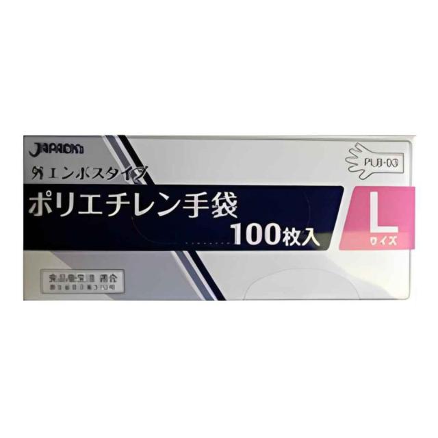 ●ポリエチレン製の使いきり手袋(Lサイズ)100枚入です。