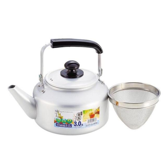 たっぷり沸かせる、茶こしアミ付きのやかん