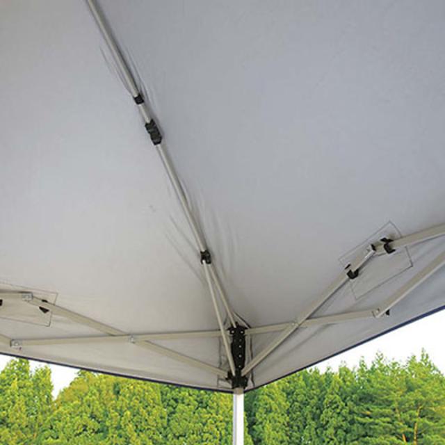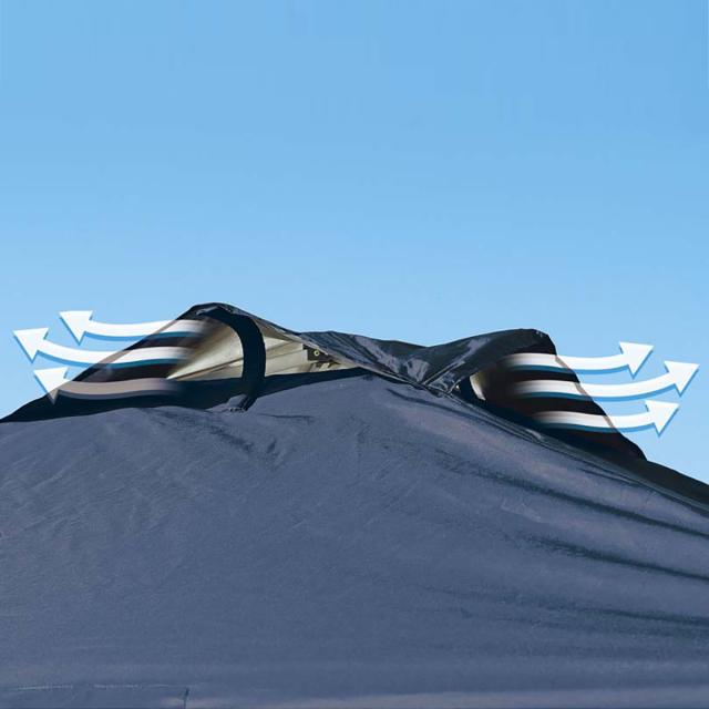 タープ内に入ってくる空気を天井部のベンチレーション(通気穴)でコントロールしているので、涼しく快適に過ごしていただけます。また、テント内側にたまる空気が抜けるので、風によってテントが倒れてしまうという事故にも効果的です。