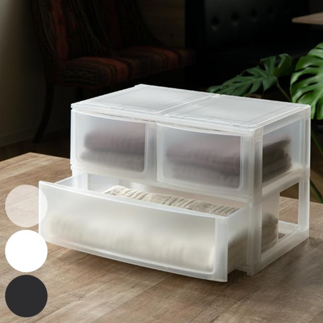 収納ケース 引き出し 幅39×奥行26.5×高さ26.5cm ワイド 深ショート2 深1段 同色2個セット ( 収納ボックス プラスチック 小物 収納 積み重ね スタッキング ナチュラ ポスデコ 上 2列 2段 小物入れ 深型 幅広 仕分け 幅39 )