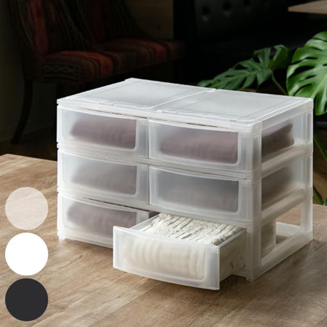 収納ケース 引き出し 幅39×奥行26.5×高さ26.5cm ワイド 浅ショート6段 同色2個セット ( 収納ボックス プラスチック 小物 収納 積み重ね スタッキング ナチュラ ポスデコ 2列 3段 小物入れ 浅型 幅広 仕分け 幅39 デスク収納 )