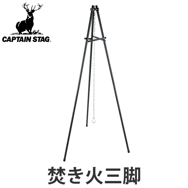 トライポッド 三脚 焚火 キャプテンスタッグ ブラックラベル ( 焚き火台 アウトドア バーベキュー 便利 グッズ 吊り下げ つり下げ ダッチオーブン 干しかご キャンプ バーベキュー BBQ 折りたたみ )