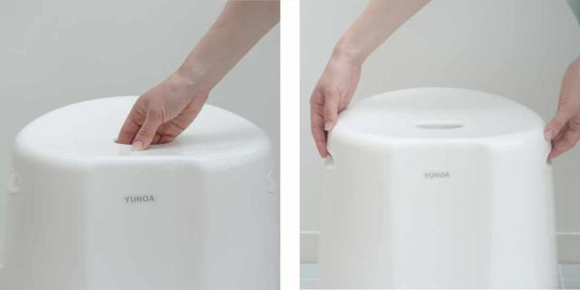 使いやすいシンプルなデザインにこだわった、ユノアシリーズの風呂椅子です。シンプルなデザインとホワイトカラーでどんな浴室でもスッキリと清潔感のある空間にまとまります。