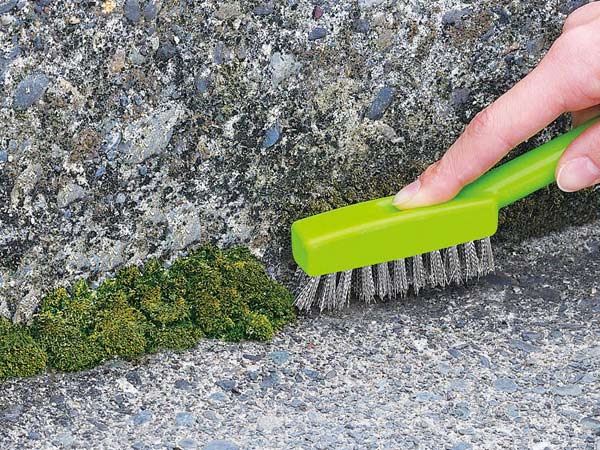 ●塀・外壁・玄関まわり・駐車場・コンクリートブロック・石などの目地などの硬い素材についたコケを素早く落とせます。