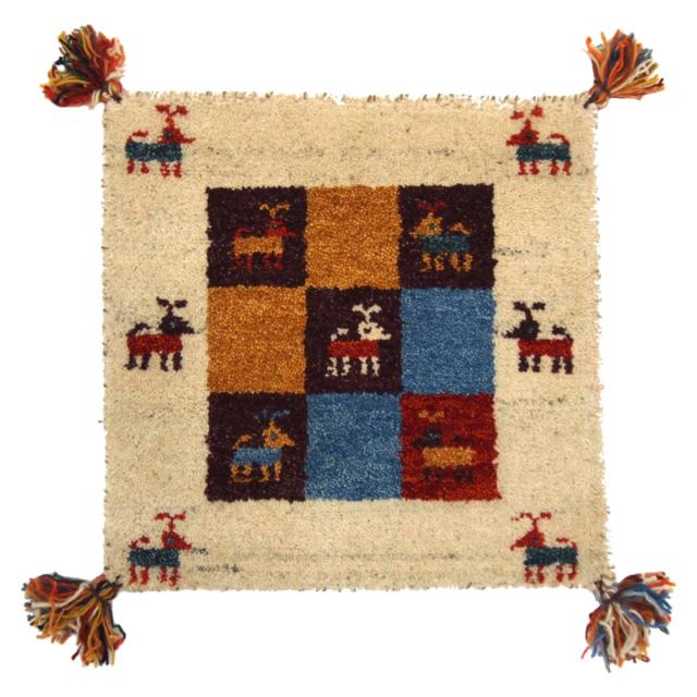 チェアパッド クッション 座布団 ギャッベ GABBEH D3 角型 40cm ( シートクッション チェアクッション ギャベ ギャッベ織 ウール 手織り 椅子用 イス用 椅子 車 車用 ベージュ ブラウン 茶系 おしゃれ かわいい インテリア )