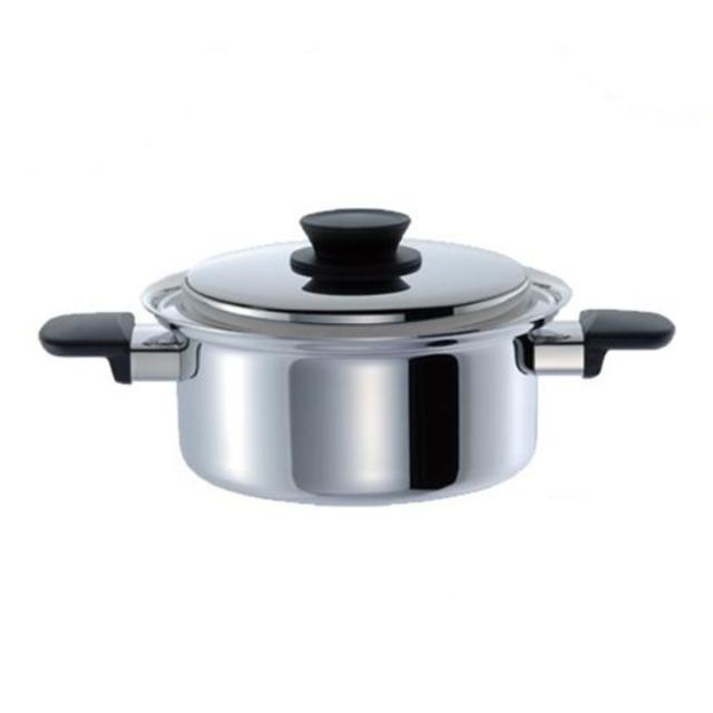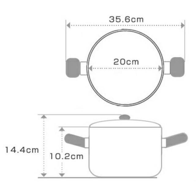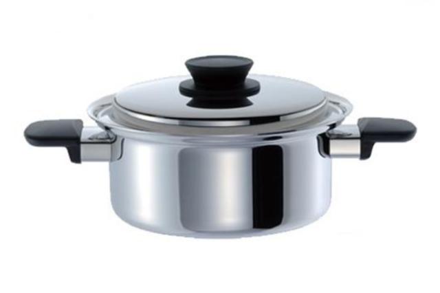 | 材質 | 本体:3層クラッド材(内側:ステンレス鋼、中心:アルミニウム合金、外側:ステンレス鋼) 本体内面:ラセン研磨仕上げ 本体外面:ミラー研磨仕上げ 蓋:ステンレス鋼 ハンドル:フェノール樹脂 蓋ツマミ:フェノール樹脂 |