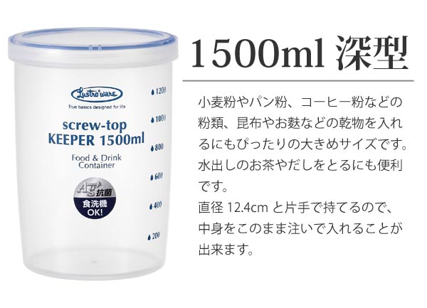 ●気になる汁漏れやニオイ漏れも強力密封する保存容器「スクリュートップキーパー」の深型・容量1500mlです。