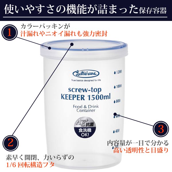 保存容器 ラストロ スクリュートップキーパー 1500ml 深型 ( 密閉 プラスチック 食洗機対応 冷凍庫 電子レンジ対応 プラスチック保存容器 1.5L 冷凍OK 入れ子式 密封 冷凍 )