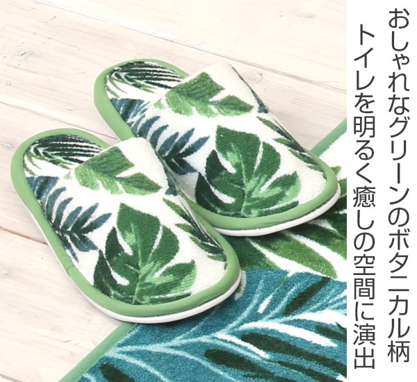 おしゃれなボタニカル柄のトイレスリッパです。トイレ用だけでなくルームシューズ使いにもおすすめです。