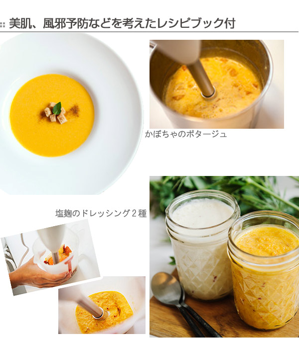 ●美肌、風邪予防、老化防止などを考えた、貝印オリジナルのレシピ17種類を掲載したレシピブック付きです。